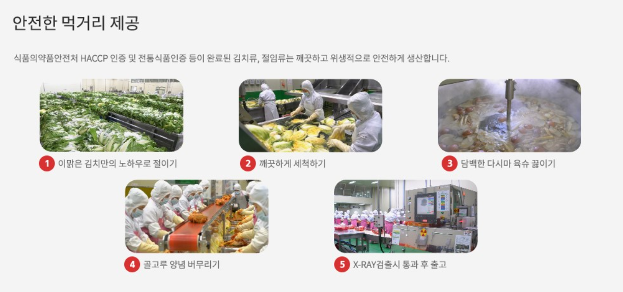 뉴스에서 종종 중국에서 만든 김치나 절임배추 그외 식자재가 비위생적인 방식으로 만들고 유통되는 것을 종종 봅니다. 국내산이라 해도 속여 팔게되면 우리 소비자는 알 수가 없습니다. 그래서 선택한 해남 절임 배추는 2009년부터 HACCP식품안전관리기준 적용업소로 지정받아 운영하고 있습니다. HACCP 인증은 위생적으로 완벽한 시설에서 생산했다는 인증입니다. 화원농협 프리미엄 김치에대해 아래에서 확인해 보시고 구매하실 수 있습니다.