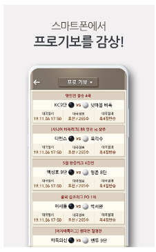 스마트폰에서는 바둑 프로 선수들의 기보도 무료로 감상하실 수 있습니다.