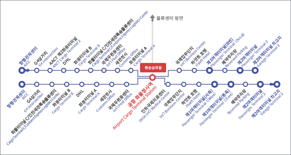 ●제1터미널에서 국제업무단지, 하늘정원, 화물터미널 이동방법