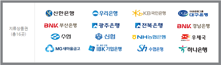 충전식 카드형 상품권은 아래 해당은행에서 구매하실 수 있고 번거롭게 앱을 다운로드하지 않고 즉시 사용이 가능한 점이 장점입니다.